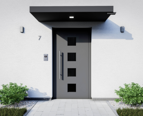 Schützen Sie Ihren Eingangsbereich mit unseren hochwertigen und stilvollen Eingangsüberdachungen von Terrassen-bayern.de – funktionaler Wetterschutz in modernem Design